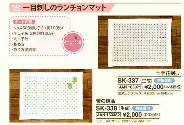 オリムパス 刺し子キット 一目刺しのランチョンマット (生成)雪の結晶 SK-338